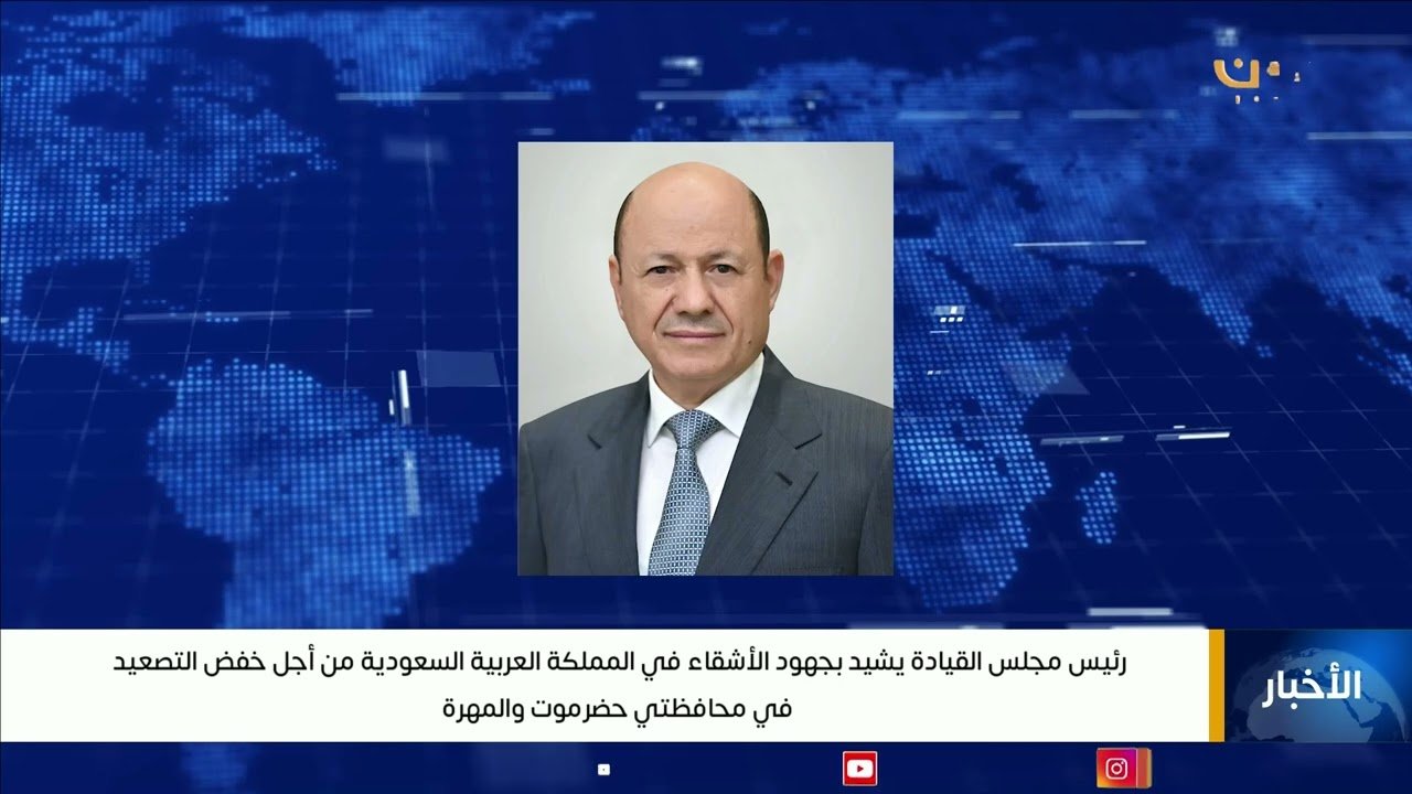 رئيس مجلس القيادة يشيد بجهود الأشقاء في المملكة العربية السعودية من أجل خفض التصعيد